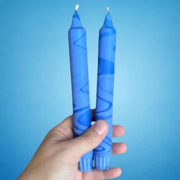 Blue Lagoon är ett marmorerat stearinljus i intensivt blåa toner – från ljus kobolt till djup indigo. Ett blickfång i varje dukning, perfekt både till vardag och fest.