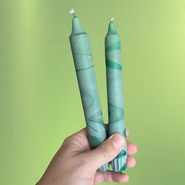 Green Whirl är ett marmorerat stearinljus i handdekorerade nyanser av grönt – från mjuk mint till djup smaragd. Varje ljus är unikt och handdekorerat i vår atel