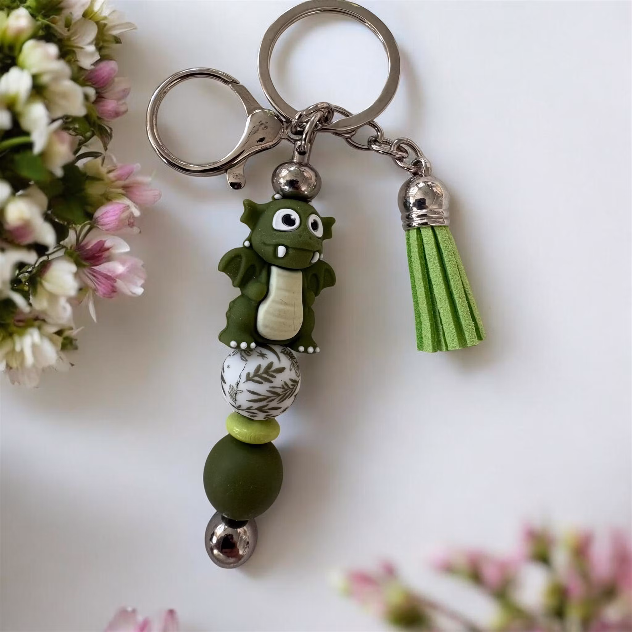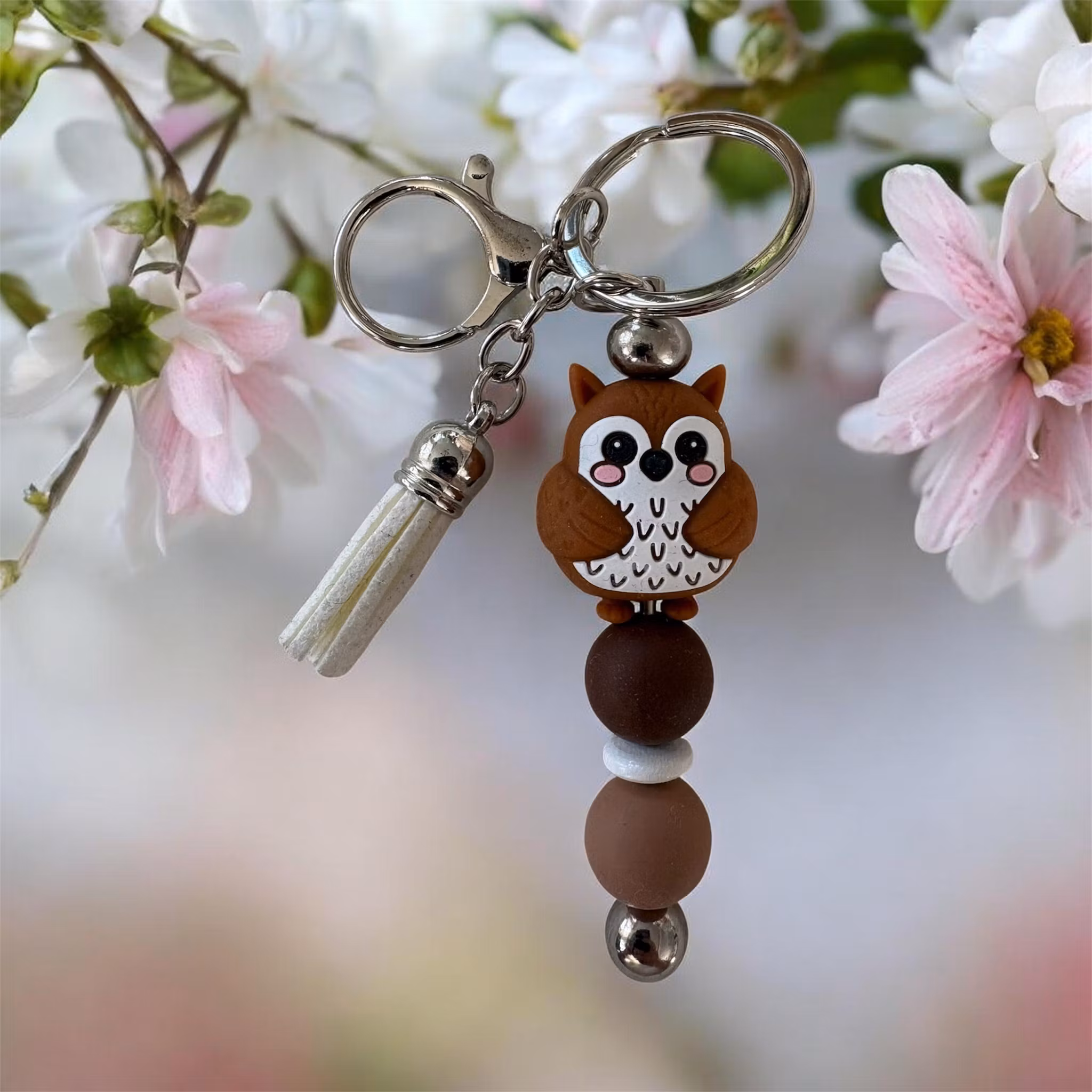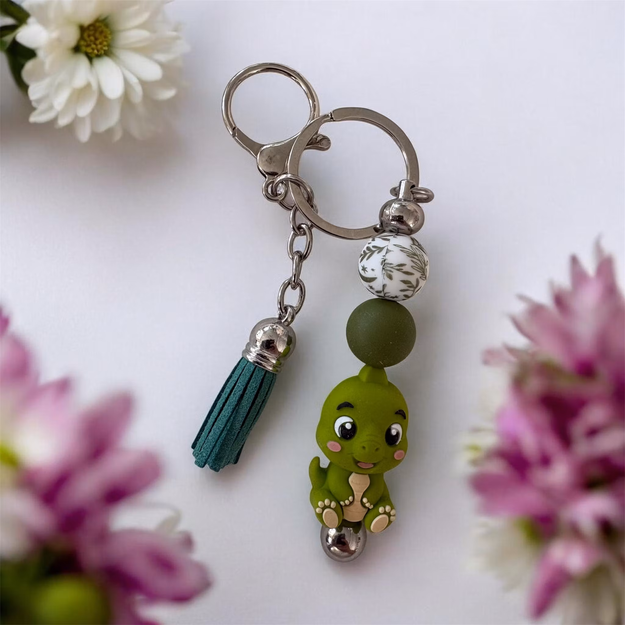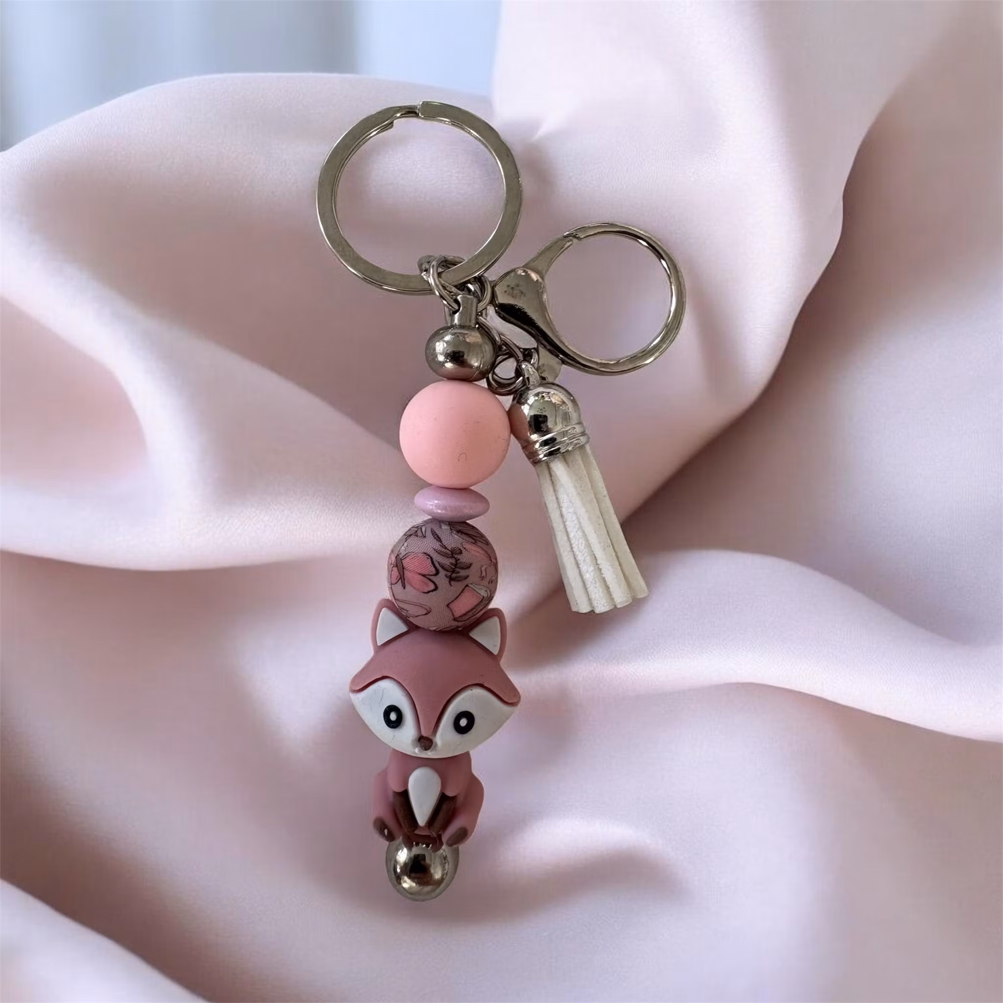 Dessa är gjorda av mig av nyckelringar och Silikonpärlor, träpärlor med mera. Man kan även få med namn på utan extra kostnad. Skriv ett meddelande så löser vi det🤗