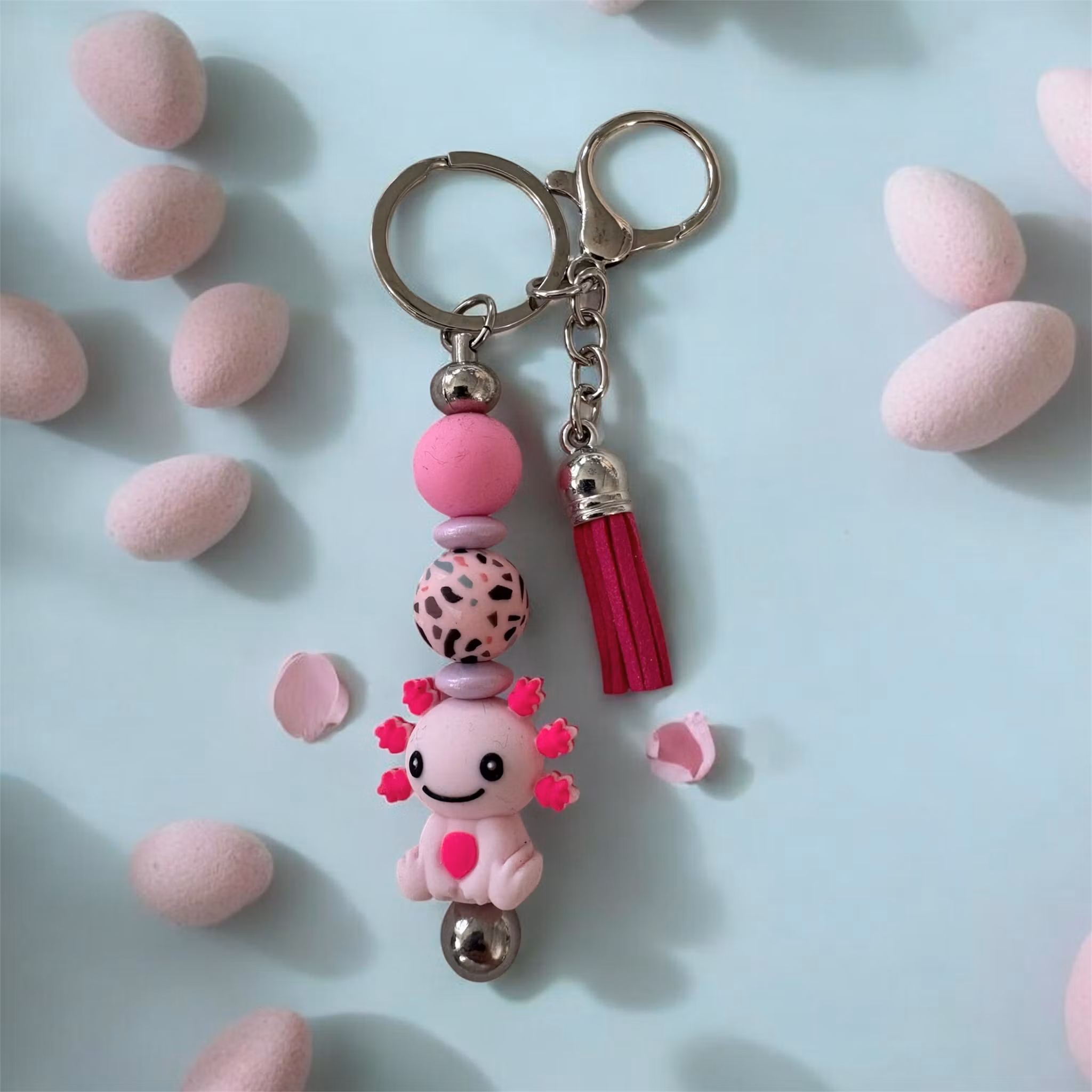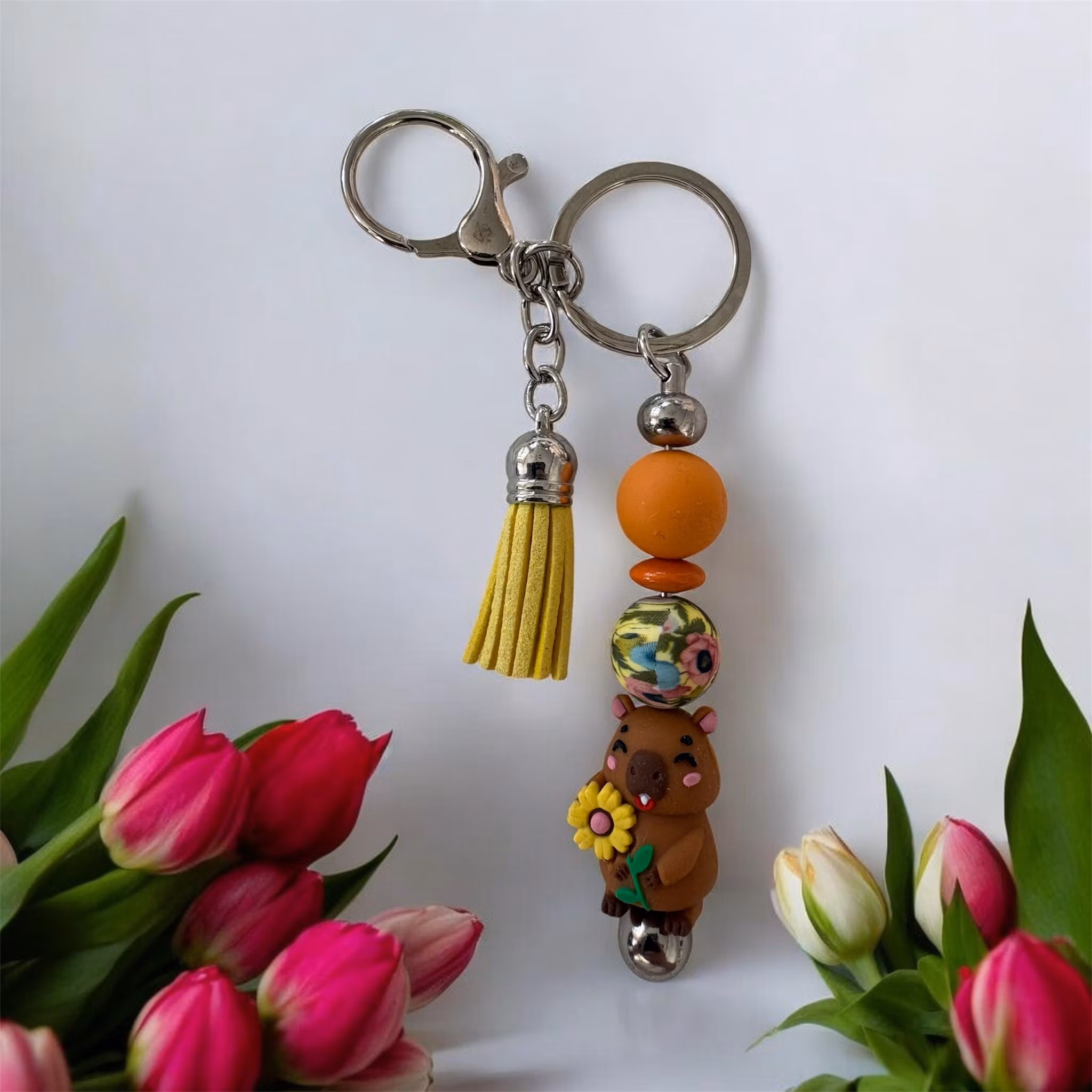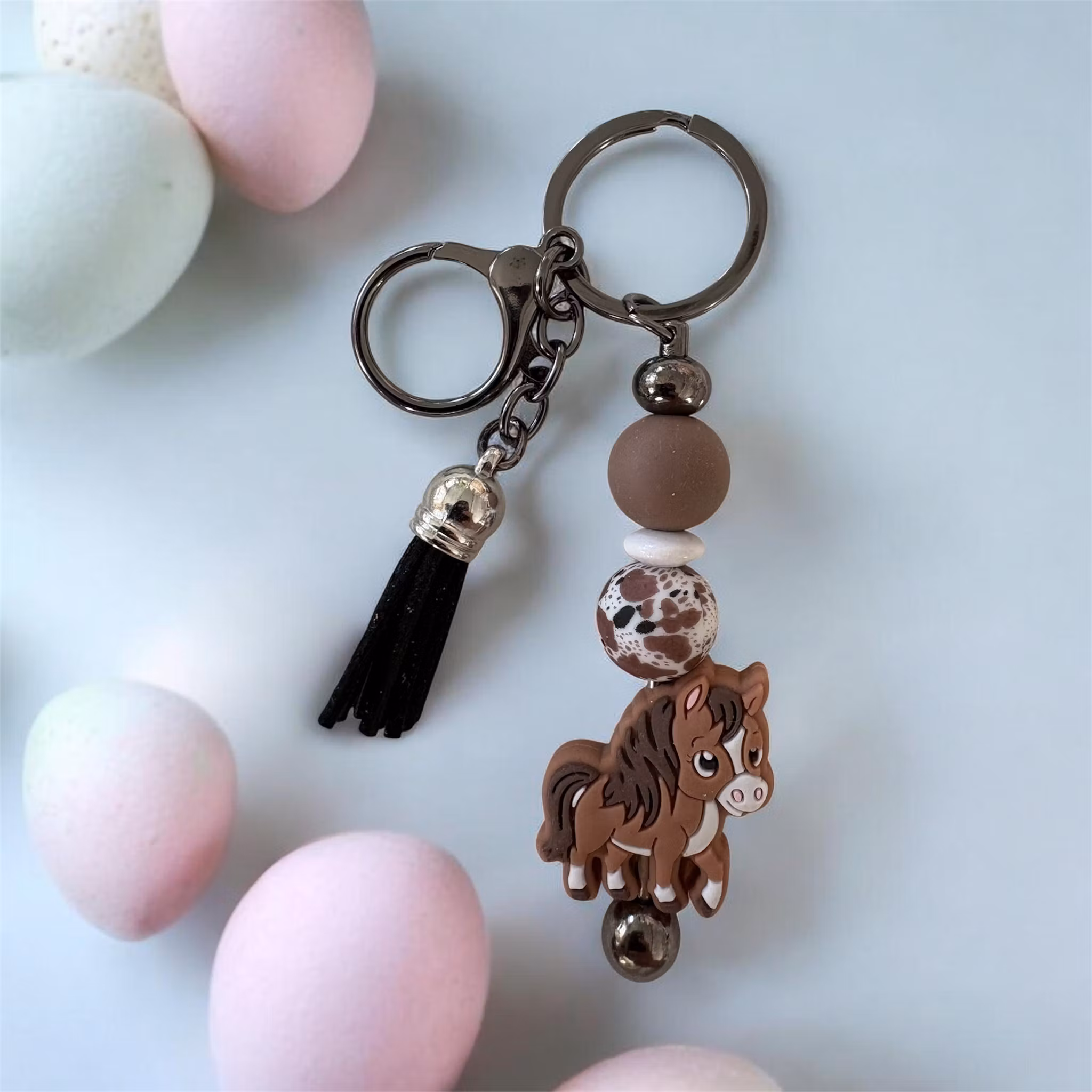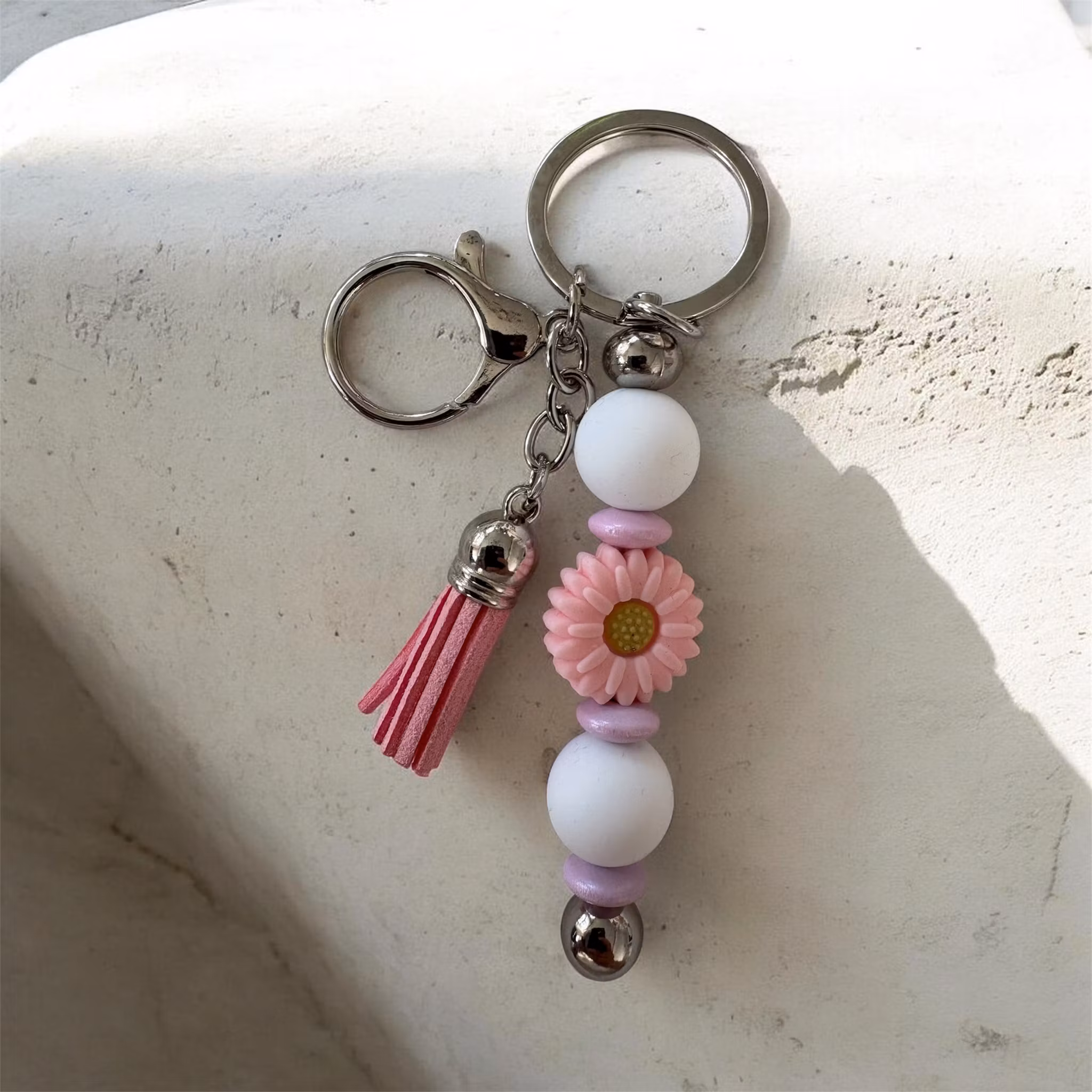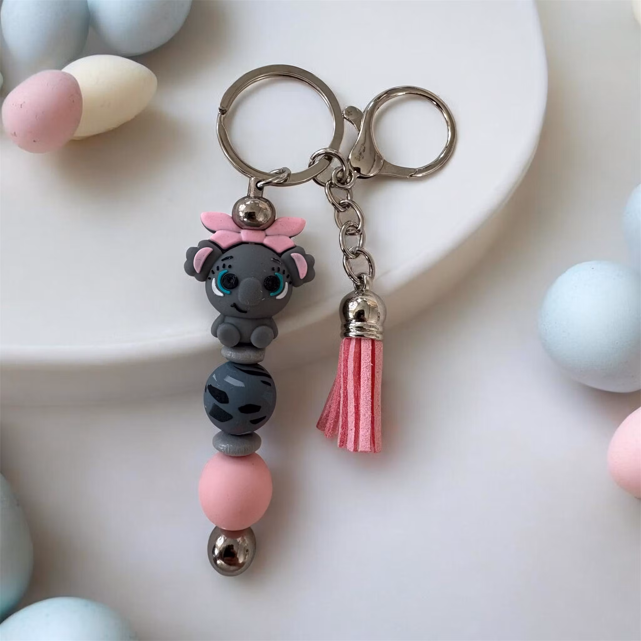 Dessa är gjorda av mig av nyckelringar och Silikonpärlor, träpärlor med mera. Man kan även få med namn på utan extra kostnad. Skriv ett meddelande så löser vi det🤗