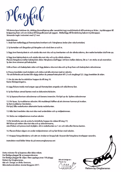 Mönster och instruktioner är på Svenska. En mer utförlig beskrivning med bilder och steg för steg instruktioner besök www.omgbananas.net
